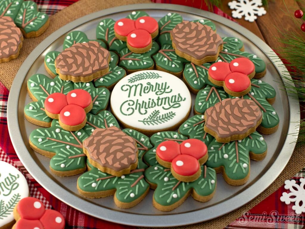 Decorating a Christmas Pine Wreath Cookie Platter with Royal Icing